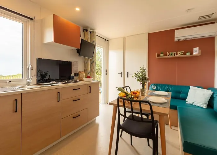 Los huéspedes pueden utilizar servicio de tetera/cafetera, que se proporcionan en un comedor al aire libre y una zona de comedor. La cocina también dispone de hervidor eléctrico, nevera y tostadora. Los huéspedes pueden disfrutar de comidas francesas en el restaurante L'olivier, que está a unos 25 minutos a pie. Le Cycas, Mobil-Home Neuf Avec Sa Vue Degagee Sur Les Vignes Et La Mer también está muy cerca de la parada de autobús Tour Fondue.
